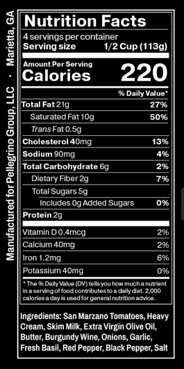 Spicy Butter Cream Sauce - Who says you can't have two #1 products. This sauce is the perfect companion to our marinara. It combination of spice, butter and cream make it a delicious addition to pasta, seafood, pizza or any type of toasted bread. Add it to soup to enhance the overall essence of your dish.